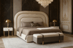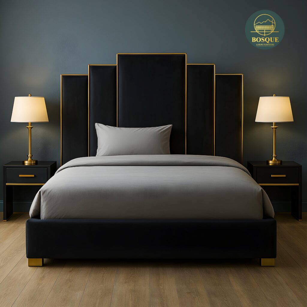 Elevate your bedroom décor with the Velmora Elegance King Bed. Its clean lines, contemporary design, and luxurious details blend seamlessly to create a piece that’s both on-trend and timeless. The plush, upholstered headboard makes a striking statement, while the king size platform provides ample space for ultimate relaxation. The subtle shimmer of the gold trim adds a touch of glamour, making the Velmora Elegance a perfect centerpiece for your modern oasis.